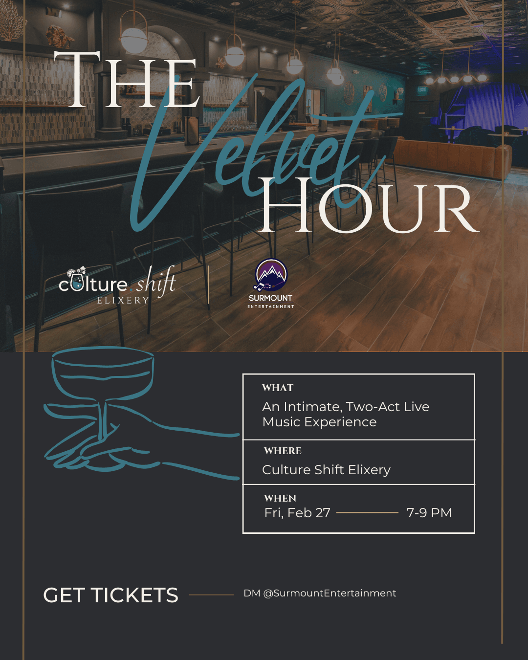 Step into The Velvet Hour, a love-themed cabaret and an intimate two-act live performance by Nova & Ray of Music in the speakeasy back lounge of Culture Shift Elixery. This Cabaret of Love will feature soulful covers exploring love in all its forms - from romance and longing to heartbreak and joy. While one act pulls you in with intimate listening, act two turns up the heat to get you dancing. Rich vocals, playful energy, and a cozy atmosphere made for sipping, snacking, swaying, and feeling all the feels.